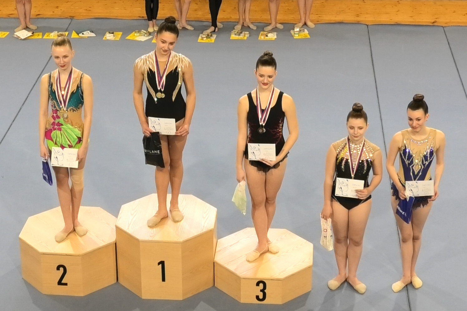 družstvo společných skladeb ve IV. kategorii linie B (obruče a míče). Děvčata (Karolína, Alžběta, Ráchel, Stázka a Viktorie) odcvičila zodpovědně a odvezla si bronzovou medaili.